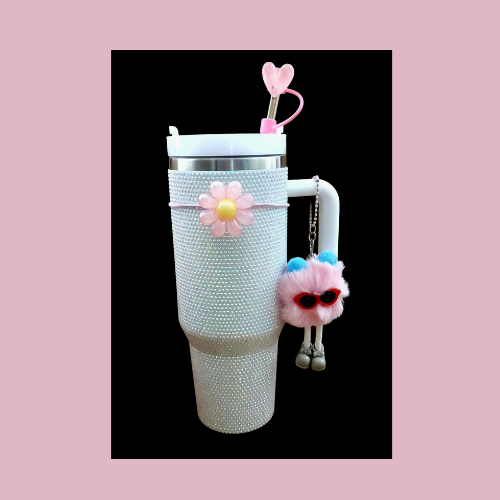 Available in beautiful sparkling colors, these large tumblers are perfect for enjoying your favorite drink all day long in style. It comes neatly packed in a box with an accessory kit, making it even more unique and a great gift idea! Each tumbler includes a convenient stainless steel straw and a plastic straw for easy sipping. If bling is your thing and being very extra, then this tumbler is a must have!!