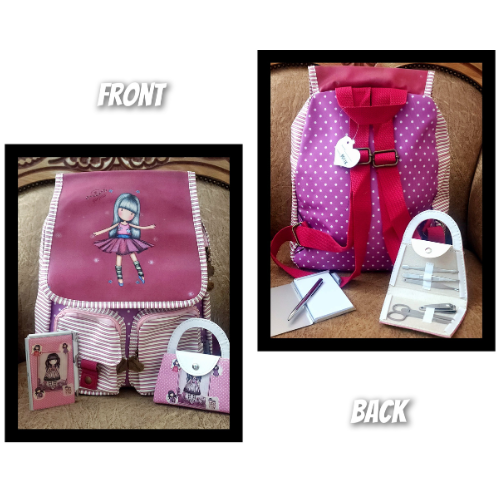 Combo includes the backpack, beautiful notebook with pen and nail grooming kit in a cute pouch.