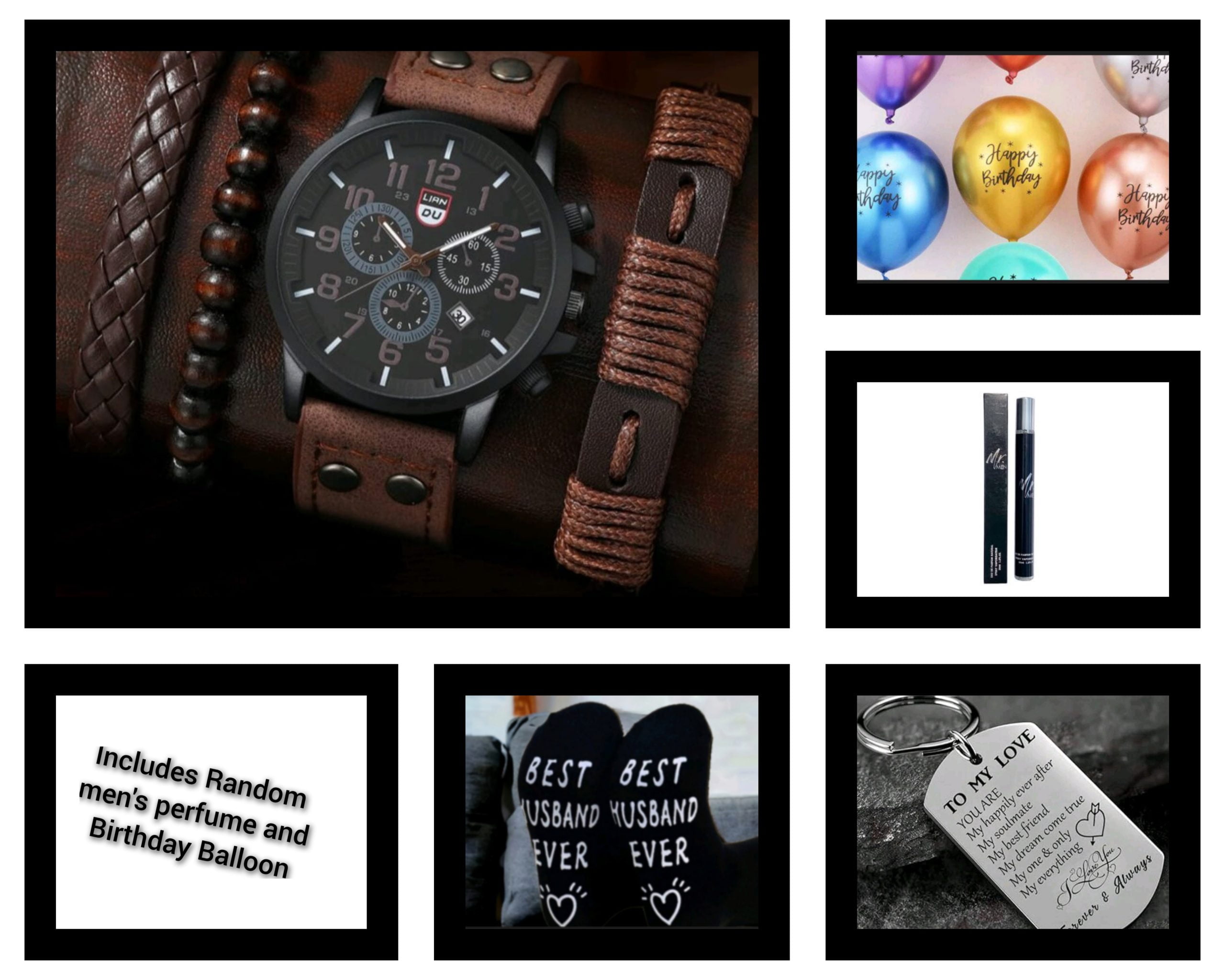 “Surprise your husband with FASH’s exclusive Men’s Husband Hamper featuring a stylish Watch Set and cozy Husband Socks, 35ml Perfume, a Birthday Balloon and a Keychain. Elevate your gifting game with this thoughtful and fashionable hamper designed to make every occasion special. The watch set adds a touch of sophistication to his wrist, while the comfortable husband socks ensure warmth and style. Embrace the joy of giving and show your appreciation with this curated hamper that speaks to his unique personality. Shop now at FASH and make a lasting impression with the perfect gift for your husband. Transform the way you express love and gratitude with our Men’s Husband Hamper – a delightful combination of style and comfort. Explore FASH for unique gifts that leave a lasting impact and redefine your gifting experience.”