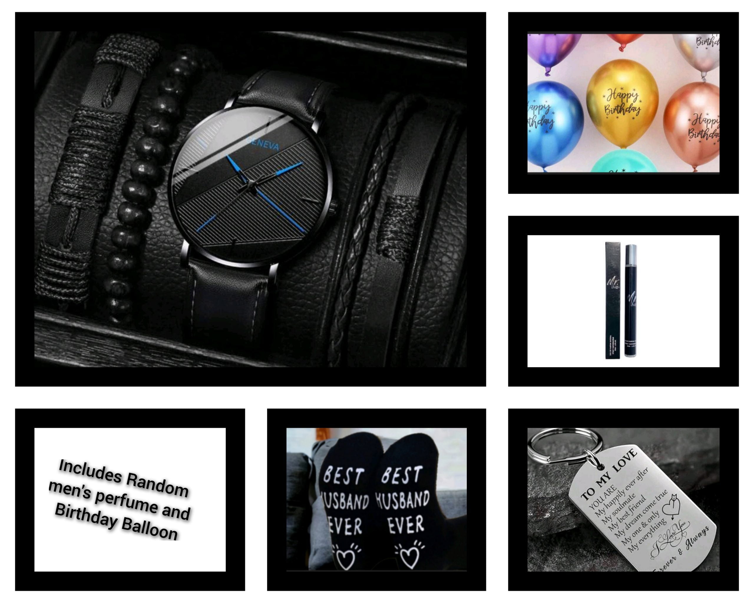 “Surprise your husband with FASH’s exclusive Men’s Husband Hamper featuring a stylish Watch Set and cozy Husband Socks, 35ml Perfume, a Birthday Balloon and a Keychain. Elevate your gifting game with this thoughtful and fashionable hamper designed to make every occasion special. The watch set adds a touch of sophistication to his wrist, while the comfortable husband socks ensure warmth and style. Embrace the joy of giving and show your appreciation with this curated hamper that speaks to his unique personality. Shop now at FASH and make a lasting impression with the perfect gift for your husband. Transform the way you express love and gratitude with our Men’s Husband Hamper – a delightful combination of style and comfort. Explore FASH for unique gifts that leave a lasting impact and redefine your gifting experience.”