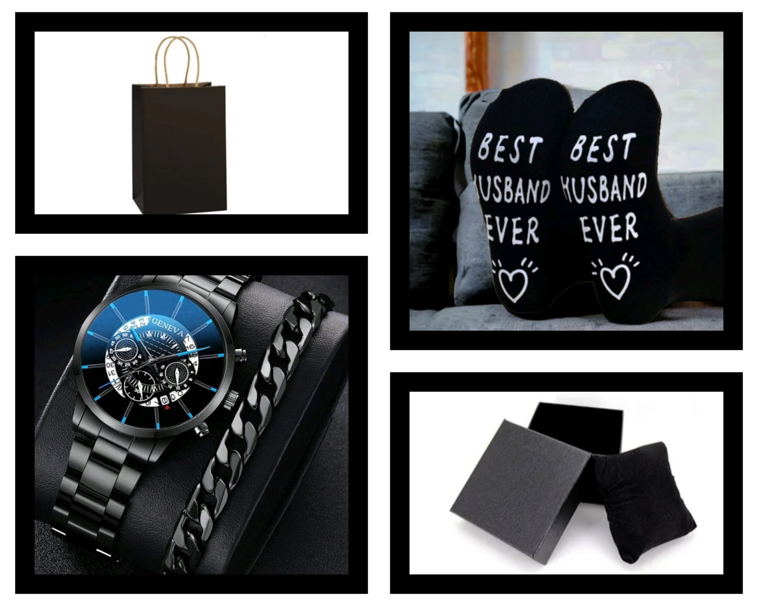 “Surprise your husband with FASH’s exclusive Men’s Husband Hamper featuring a stylish Watch Set and cozy Husband Socks. Elevate your gifting game with this thoughtful and fashionable hamper designed to make every occasion special. The watch set adds a touch of sophistication to his wrist, while the comfortable husband socks ensure warmth and style. Embrace the joy of giving and show your appreciation with this curated hamper that speaks to his unique personality. Shop now at FASH and make a lasting impression with the perfect gift for your husband. Transform the way you express love and gratitude with our Men’s Husband Hamper – a delightful combination of style and comfort. Explore FASH for unique gifts that leave a lasting impact and redefine your gifting experience.”