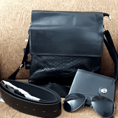 Combo includes a unisex bag, sunglasses, belt and wallet.