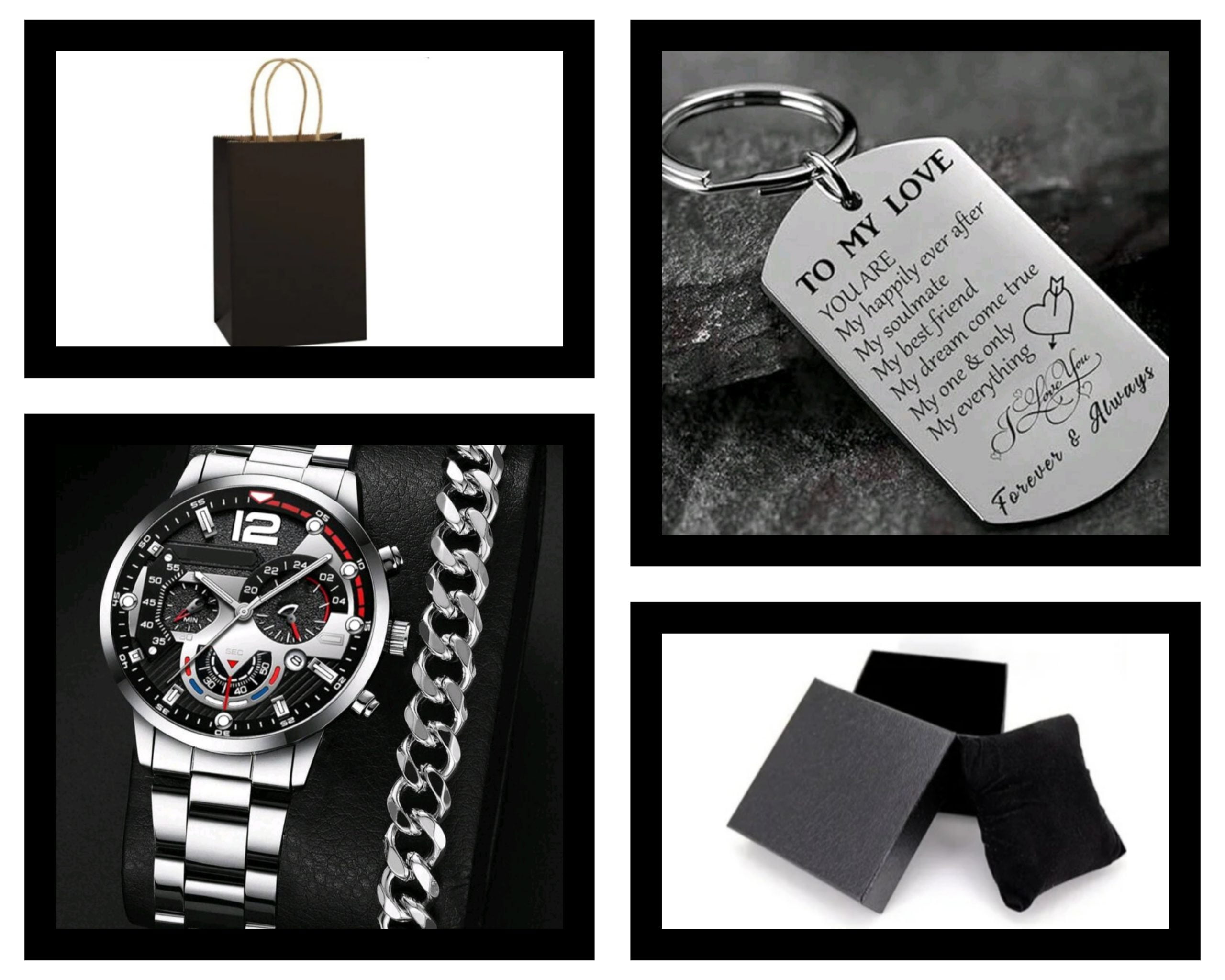 Men’s Gift Hamper for Anniversary/Birthday with Watch set and keychain