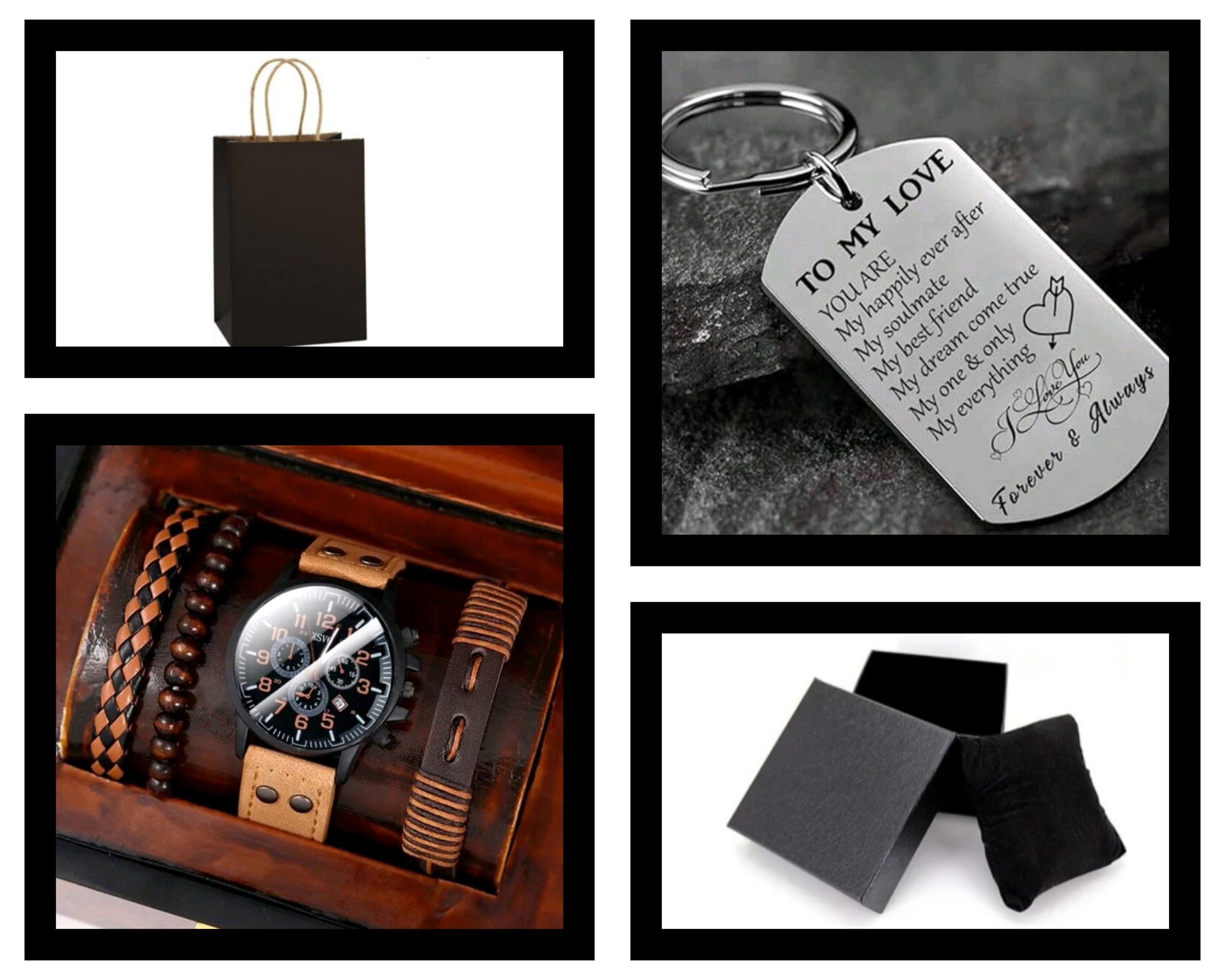 Men’s Gift Hamper for Anniversary/Birthday with Watch set and keychain