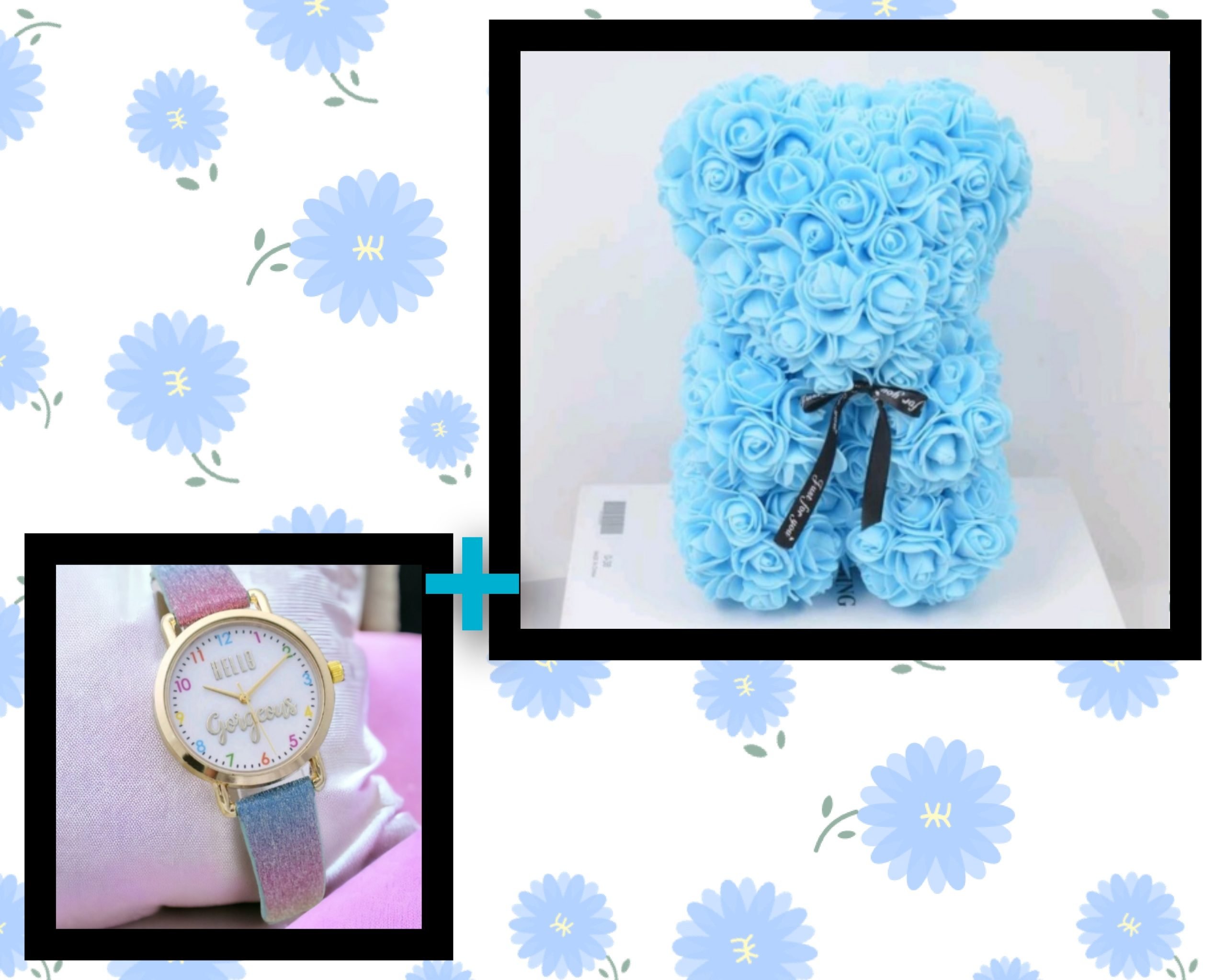 “Surprise your loved one with the exquisite FASH Artificial Rose Heart and beautiful watch set combo, the perfect romantic gift for Valentine’s Day, anniversary, birthday or any special occasion. Crafted with care and attention to detail, this enchanting bear is adorned with beautiful artificial roses, creating a timeless expression of love. A beautiful watch set adding an extra touch and making this gift even more special.Whether as a thoughtful decoration or a unique love gift, this gift speaks volumes. Elevate your celebrations with a touch of romance and elegance. Made to be cherished, this gift is a symbol of enduring love and a lasting memory. Shop now at FASH and make every moment unforgettable. Embrace the sentiment of love with our Artificial Rose heart and watch set combo, a heartfelt gesture that goes beyond words. Order yours today and let love bloom in the most beautiful way possible.”