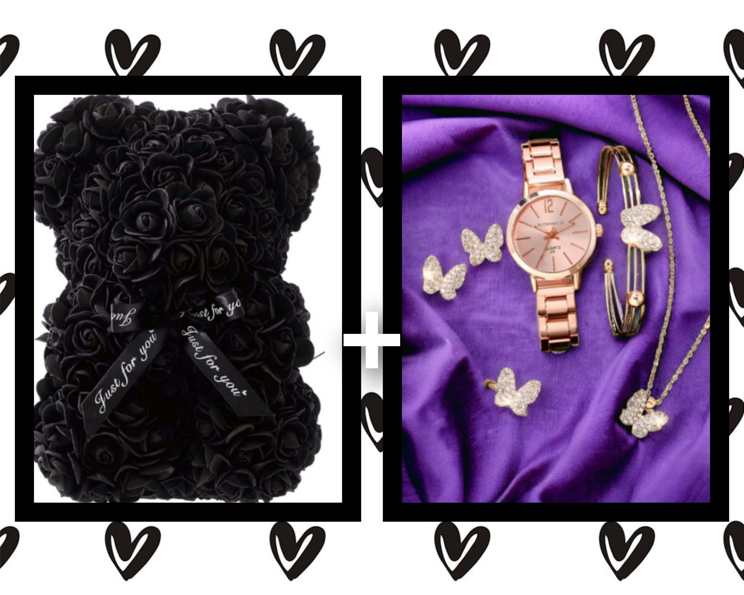 “Surprise your loved one with the exquisite FASH Artificial Rose Heart and beautiful watch set combo, the perfect romantic gift for Valentine’s Day, anniversary, birthday or any special occasion. Crafted with care and attention to detail, this enchanting bear is adorned with beautiful artificial roses, creating a timeless expression of love. A beautiful watch set adding an extra touch and making this gift even more special.Whether as a thoughtful decoration or a unique love gift, this gift speaks volumes. Elevate your celebrations with a touch of romance and elegance. Made to be cherished, this gift is a symbol of enduring love and a lasting memory. Shop now at FASH and make every moment unforgettable. Embrace the sentiment of love with our Artificial Rose heart and watch set combo, a heartfelt gesture that goes beyond words. Order yours today and let love bloom in the most beautiful way possible.”