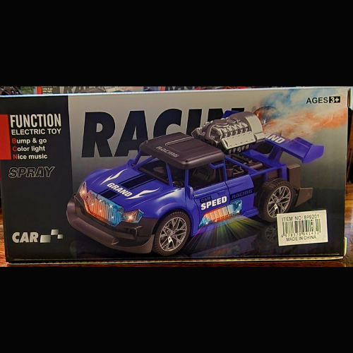 “Your kids will love these awesome spray racing cars! Just add batteries and water, switch to on, and watch as the truck comes to life with exciting sounds and a cool spray effect—just like real exhaust smoke! If you remove the cap of the middle wheel then it drives by itself like a bumper car! These spray cars provide endless fun, and even adults will get a thrill out of them. Available in different colors, they make a fantastic addition to any toy collection. Get ready for hours of action-packed playtime!”