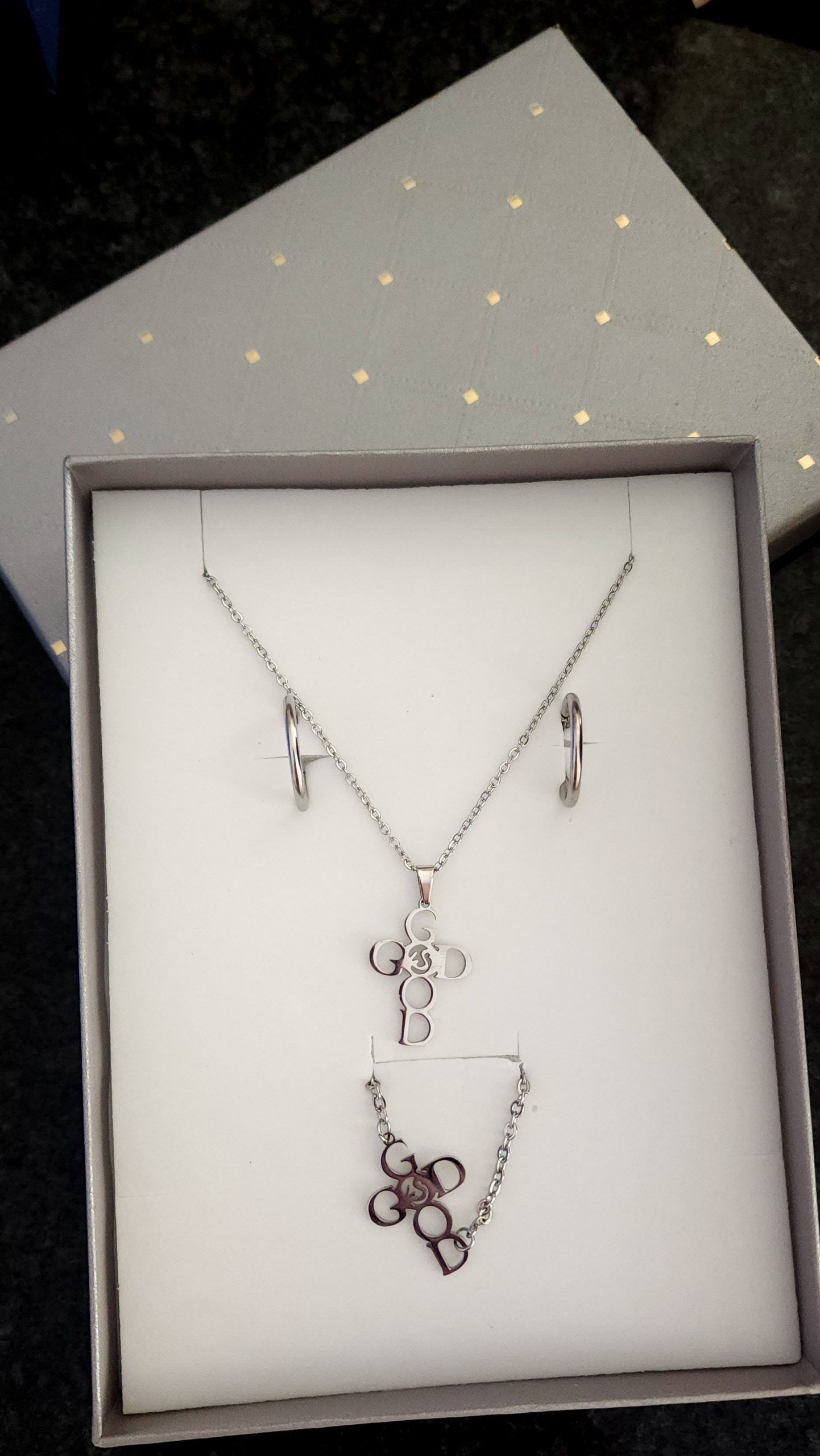 Be the first to review “Stainless Steel Jewelry set-God is Good cross” Cancel reply