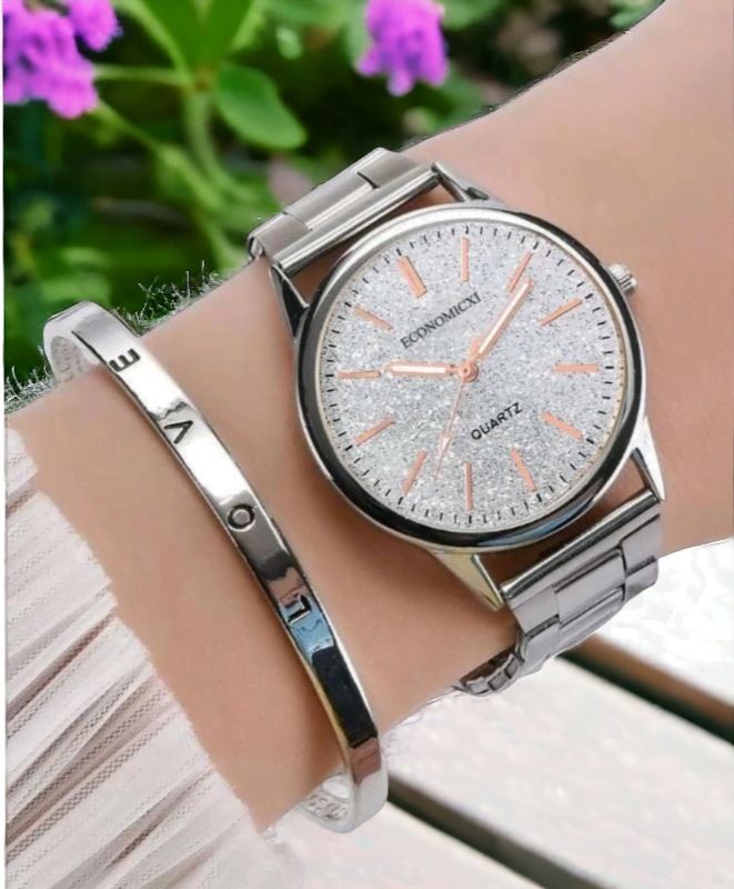 “Surprise your loved ones with FASH’s Women’s Silver Glitter Watch With Love Bracelet – the perfect gift for your wife, daughter, and friend. This exquisite set combines style and sentiment, featuring a stunning silver glitter watch paired with a love bracelet. Elevate your gifting experience and make a lasting impression with this timeless accessory. Crafted with precision, it’s a symbol of love and elegance. Shop now at FASH to express your affection and add a touch of sparkle to their lives. Celebrate special moments and create cherished memories with the Women’s Silver Glitter Watch With Love Bracelet. Transform your gift-giving into a statement of love and style. Explore FASH for unique and meaningful accessories that reflect your sentiments beautifully.”